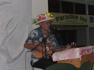 when I was greeted by 74-year-old ukulele player Jake Numanga, who has